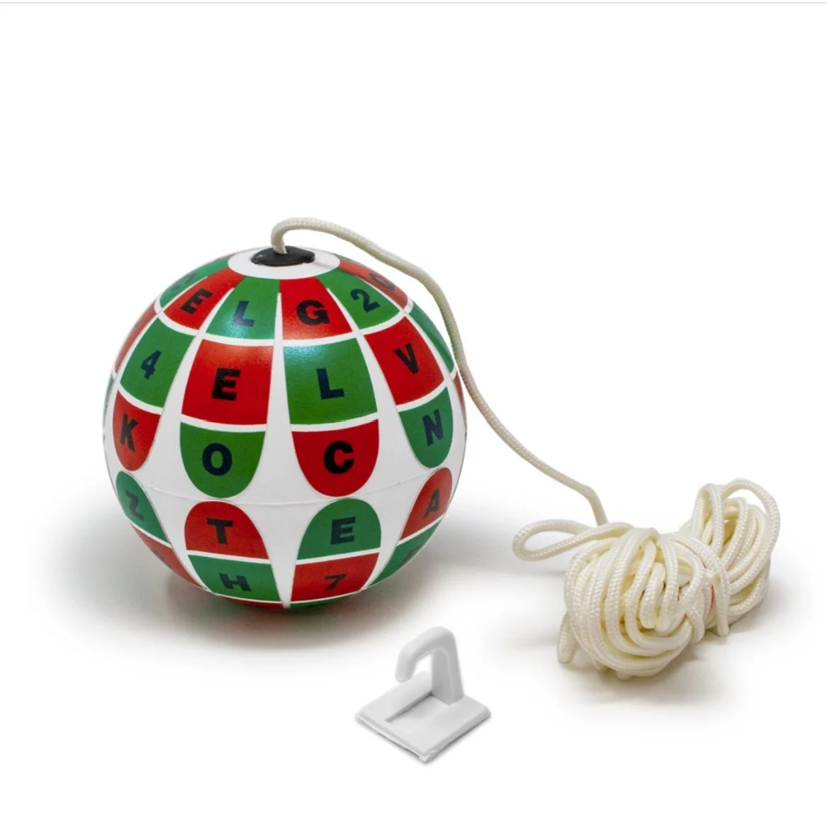 A simple rubber ball with colorful letters and numbers on it, the patient will be tasked with calling out what they can see on the ball while it is in motion.